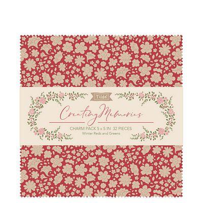Tilda's Creating Memories Collection WINTER Charm Pack includes 32 5in x 5in squares - 2 of each of the spring colorway, both prints and wovens. Tilda Fabric's Creating Memories Collection are 100% cotton prints and wovens designed by Norwegian designer Tone Finnanger. The Winter Reds and Greens colorway contains an array of red fabrics combined with hints of green. In addition to Winter projects, this collection can of course also be useful all year round for any project where red and green fabrics are needed. The fabrics in Creating Memories are useful as a small-patterned supplement all year, but dividing the precuts into seasonal colorways will help you add that extra flair to seasonal shop exhibitions.