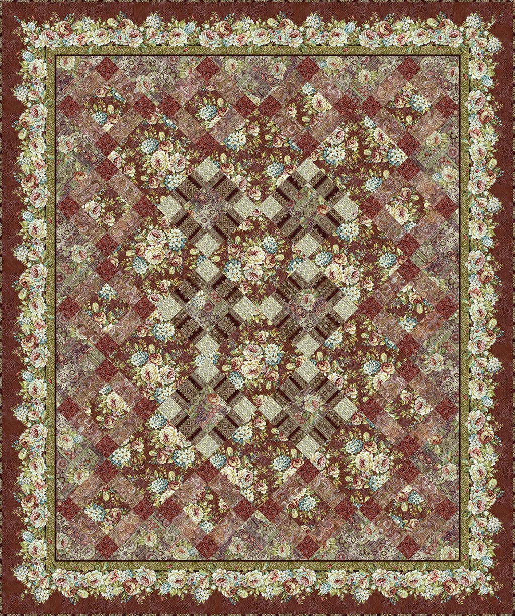 Carpet Bag Romance fabric kit featuring the Carpet Bag Romance collection designed by Jason Yenter for In The Beginnnigs. This is the Red colorway version. Finished size is 86.5" x 103.5". Backing fabric of 8-3/8 yards (horizontal seams) is recommended but Not included.Also available in Blue (sku 36759) and Purple (sku 36761) colorways.