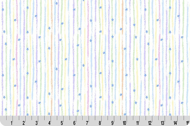 Goodnight Farm Dreamland Quilting Cuddle® plush minky features soft pastel stripes dotted with twinkling stars, creating a gentle, soothing design that evokes the calm and magic of bedtime. Printed digitally on a 1.5mm pile fabric, the ultra-soft, low-stretch Quilting Cuddle® minky offers buttery softness without sacrificing stability. Perfect for traditional 1/4" piecing quilts and patchwork projects, small appliqué, clothing, and more.