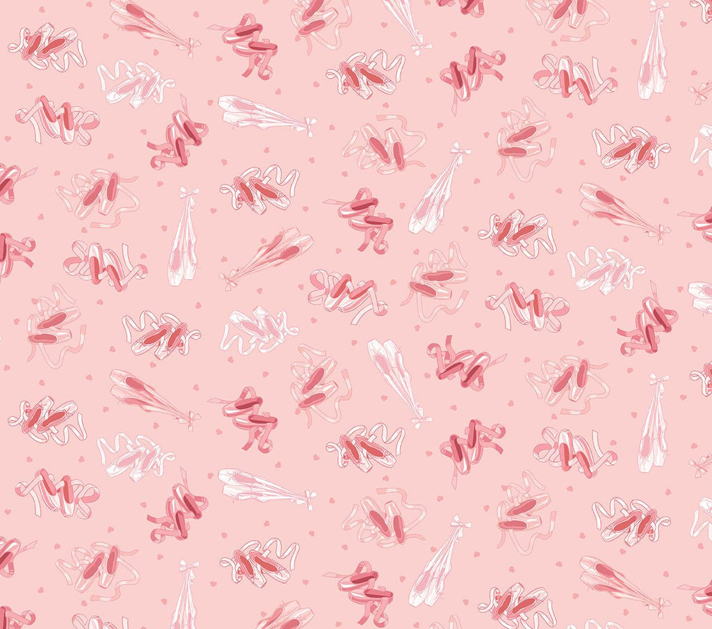 14137-21 Pairs of pink and white toe shoes on a pink background