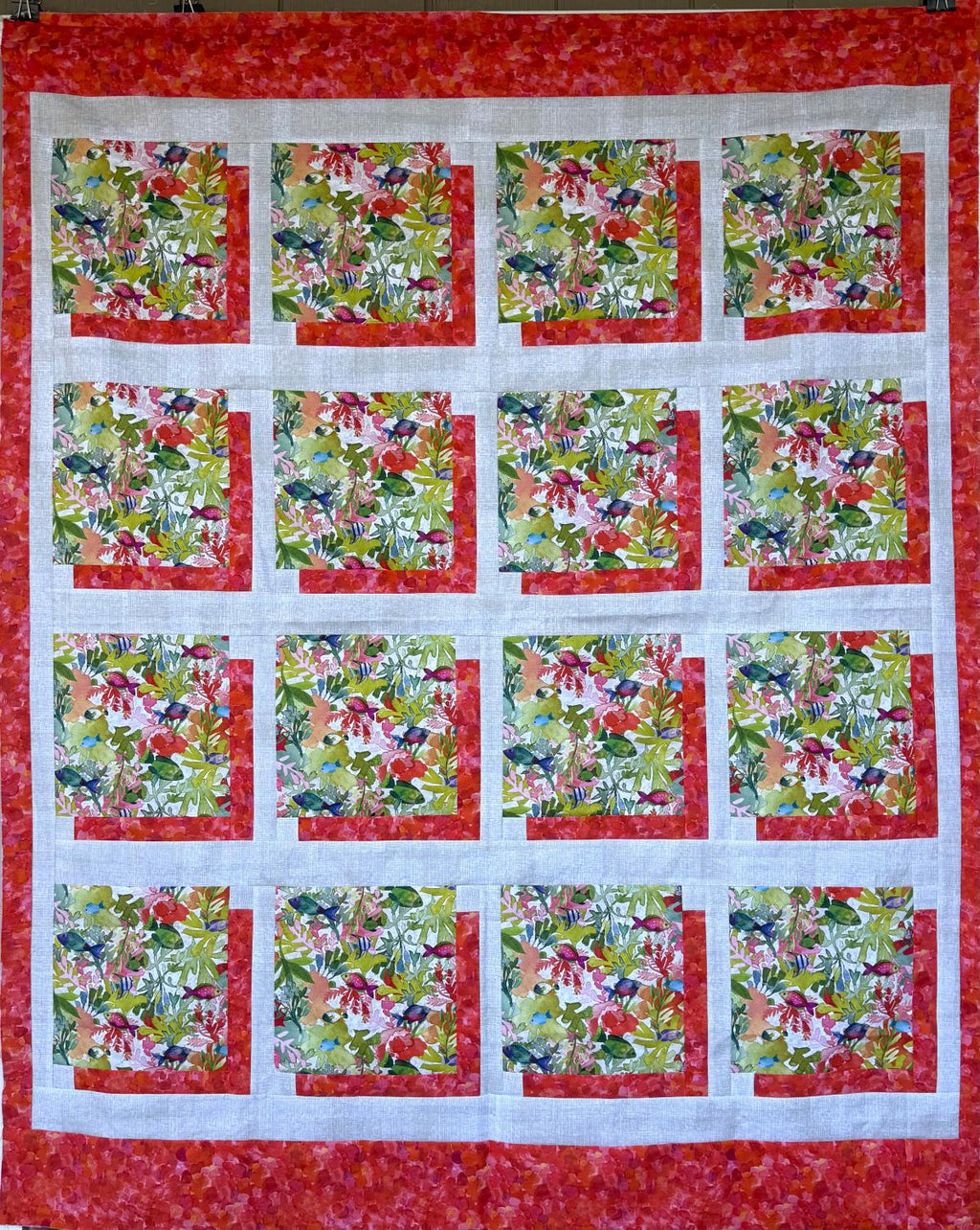 This kit includes all the fabric to complete the quilt top. Kit includes 3 yards of fabric, an extra 1/2 for binding. Pattern comes from the Fabric Cafe Panel Perfect Book (not included), the Aruba pattern. The book includes 8 total patterns.The finished size of the quilt is: 44 x 54. Backing fabric is not included.
