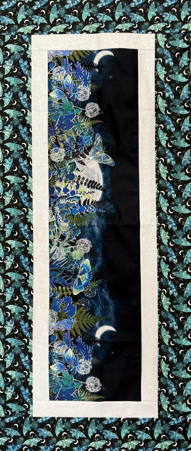 Tablerunner fabric kit featuring the La Luna collection from In The Beginnings. This night themed table runner kit follows a pattern designed by Tammy from BNP. Cutting instructions are included. Finished size is 17" x 42". Includes all the fabric to make the top, binding, and backing. Backing fabric is included.