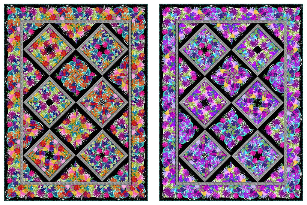 FT K Pcw Flock Together Kaleidoscope Quilt Pattern in two colorways Finished Size: 73.5" x 100.5"